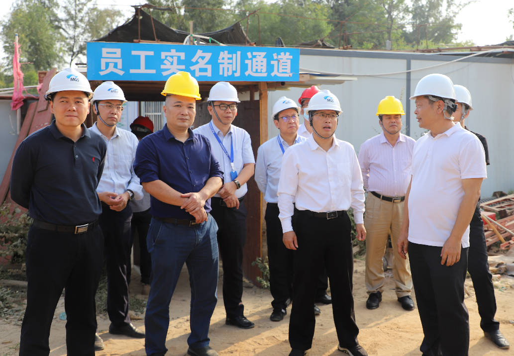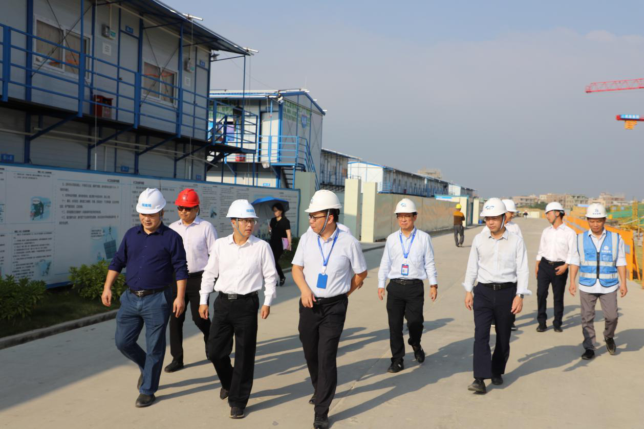 曹萬里一行先后實地察看了東灣綠城棚戶區改造項目、博賀水質凈化廠項目,并深入項目施工現場進行了勘察,聽取項目施工進度、工程安全質量、工人實名制落實等情況匯報,詳細了解施工過程中存在問題以及后續工程加速推進措施,并就項目相關問題進行探討。