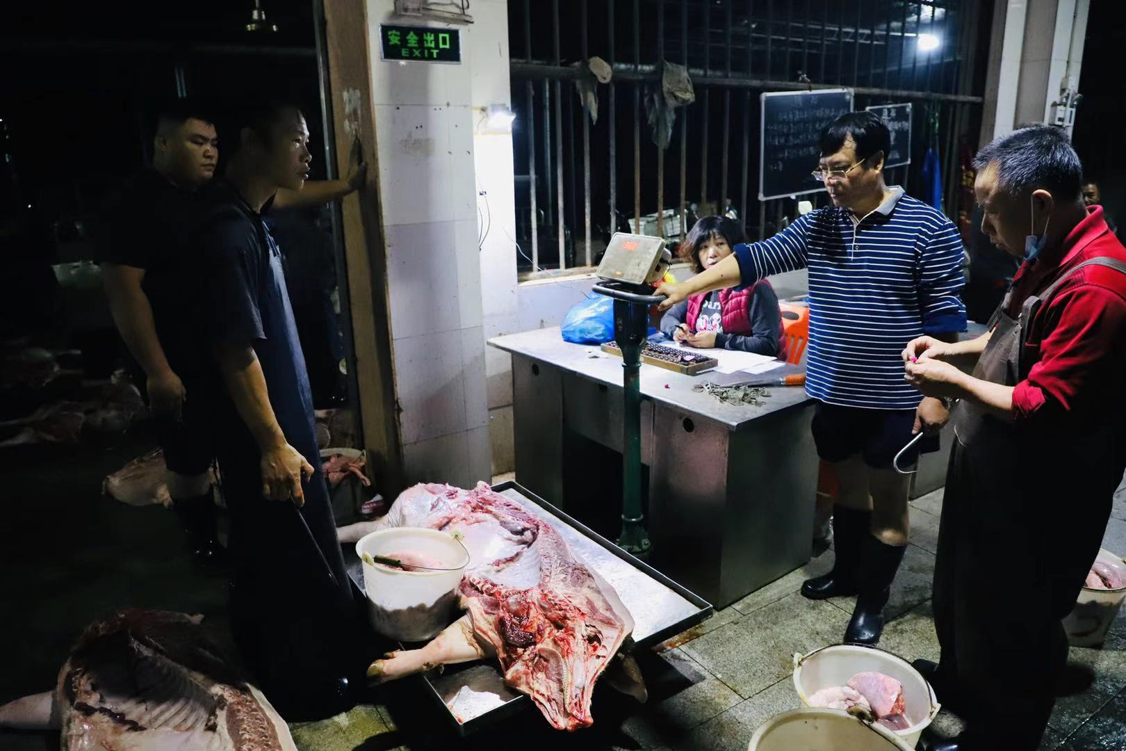 為確保兩鎮(zhèn)居民能在早市買到新鮮的生豬肉品,爵山食品公司的生產(chǎn)線必須趕在每天上午6點前完成電城、爵山、博賀、龍山四家食品公司的生豬屠宰,并將豬肉及時分發(fā)運輸?shù)诫姵恰⒉┵R兩鎮(zhèn)的各大菜市場。