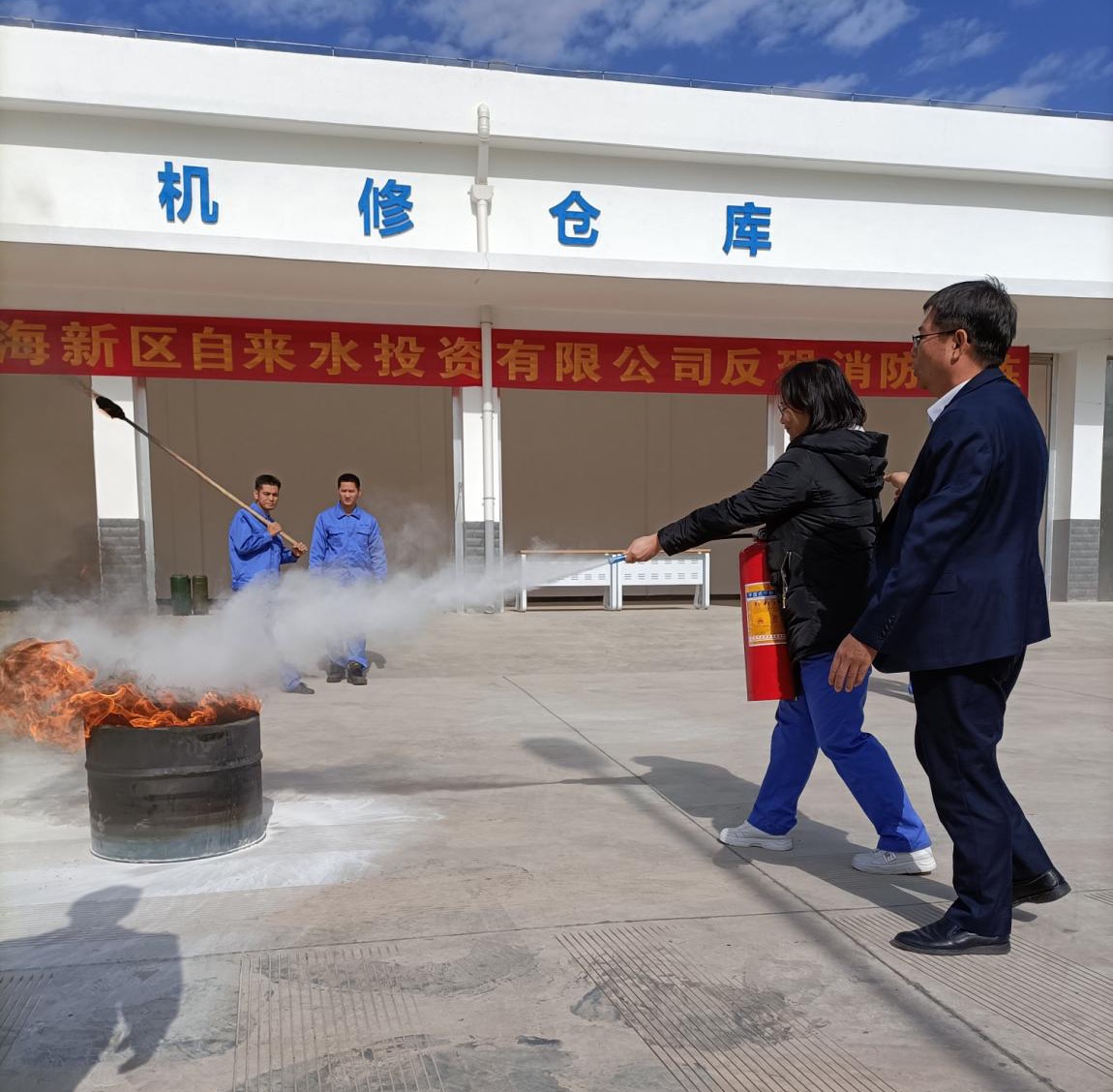 在反恐消防應急演練過程中,擔任演練總指揮的水投公司總經理楊厚德詳細介紹了演練的內容及分工,并對應急演練的各個分隊進行業務指導,示范消防器材的正確使用方法。只聽到演練指揮官一聲啟動應急預案指令之后,在各組指揮員的指揮下,參加演練的人員面對突發火災時沉著冷靜,迅速拿起滅火器跑近著火點,迅速將火源熄滅。