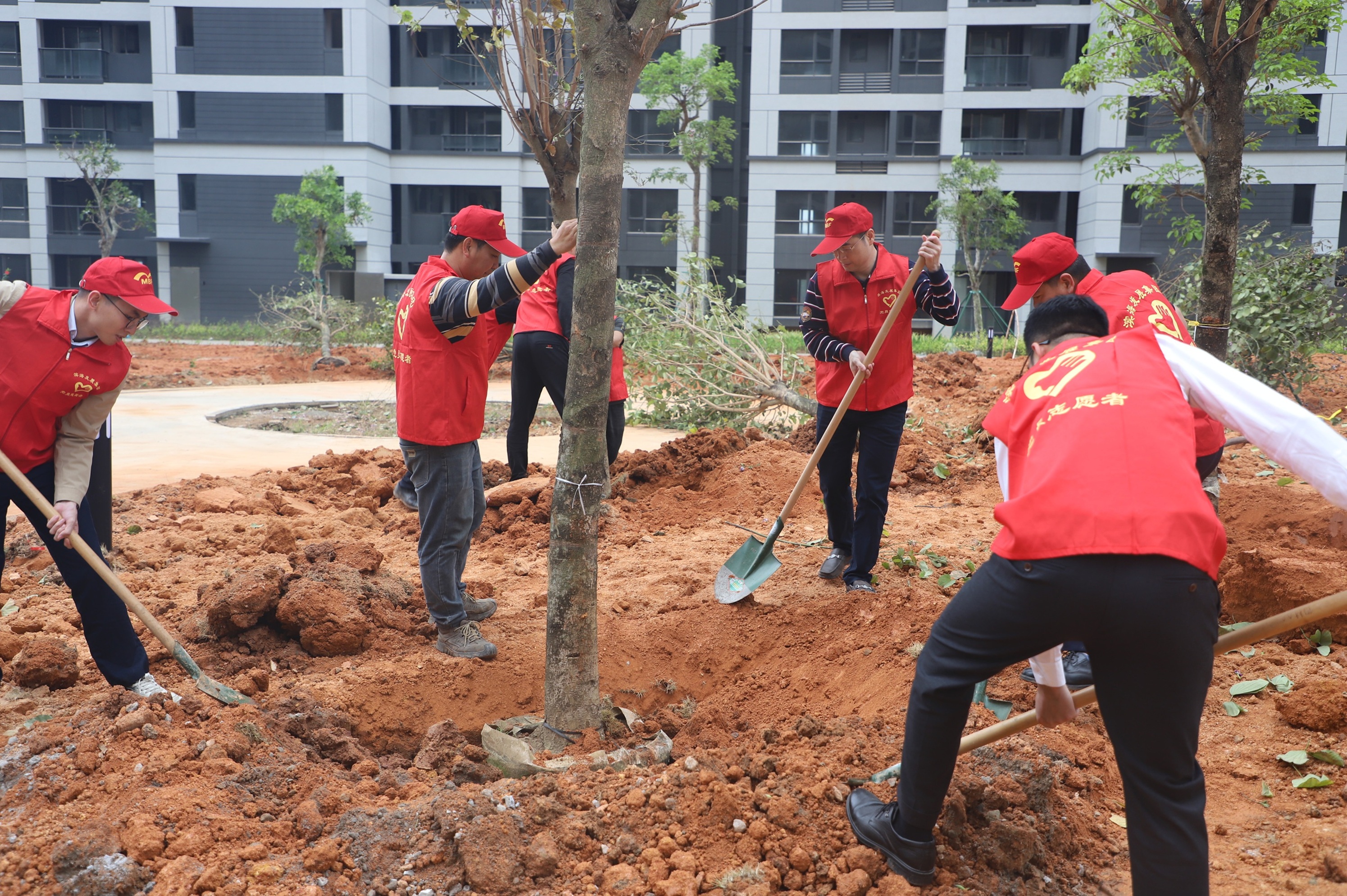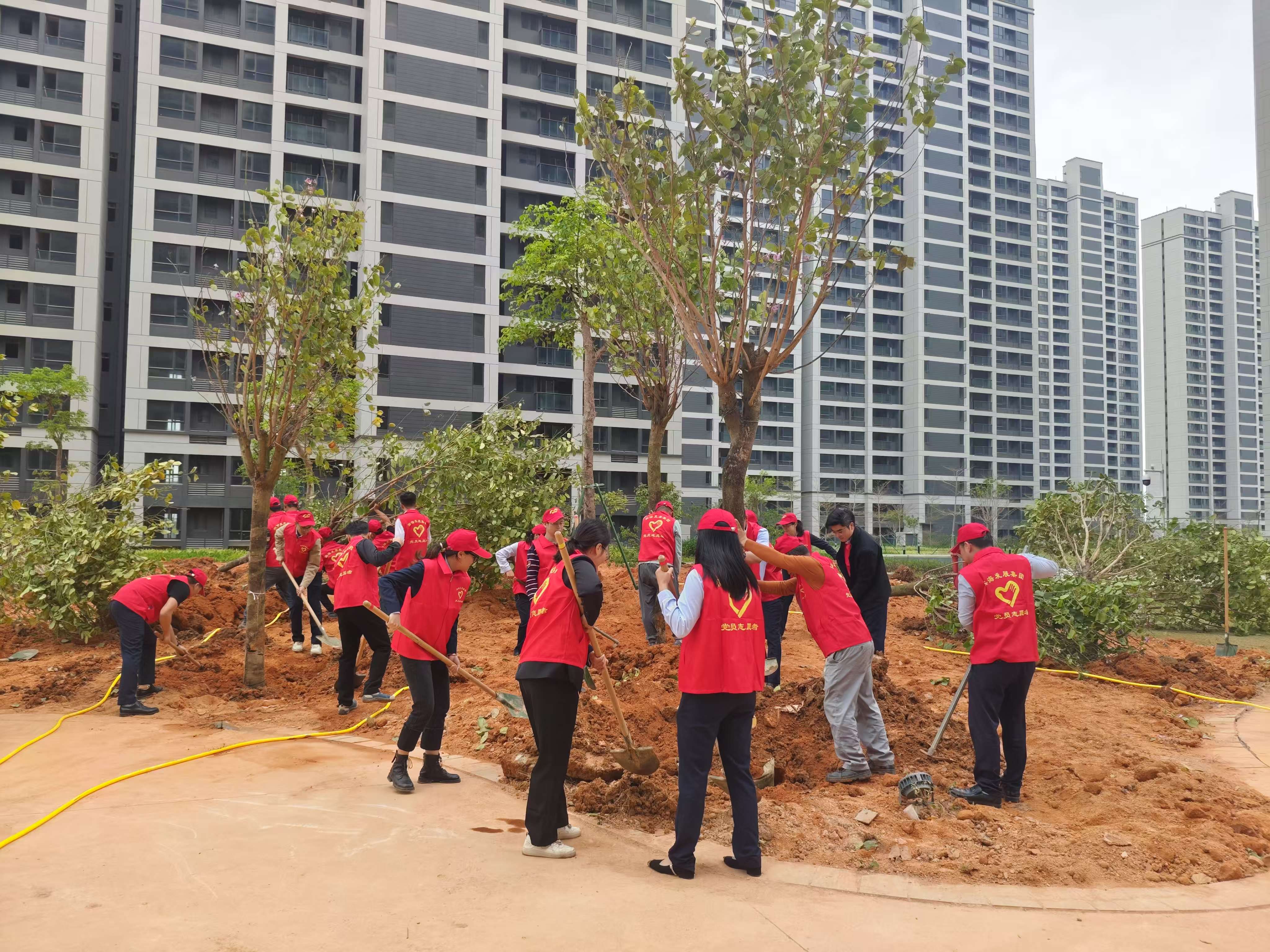 活動現(xiàn)場一片熱鬧,集團(tuán)領(lǐng)導(dǎo)班子率先垂范,黨員干部職工熱情高漲。受集團(tuán)黨委書記、董事長呂崇君的委托,在集團(tuán)黨委委員、總裁李滔的帶領(lǐng)下,眾人分工協(xié)作,揮鍬鏟土、扶苗培根、圍堰澆水,經(jīng)過一個多小時齊心奮戰(zhàn),40棵宮粉紫荊樹在東灣綠城迎風(fēng)而立,與周邊的建筑物相映成趣,形成一道亮麗的風(fēng)景線。