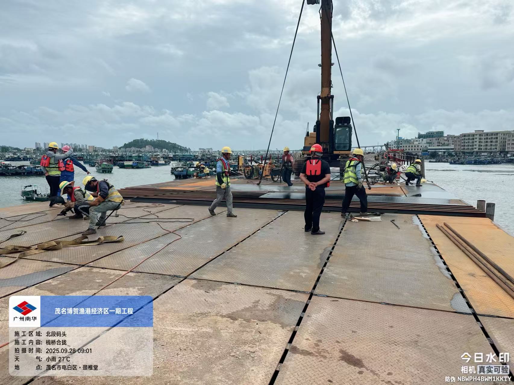 金秋十月,丹桂飄香。在喜迎中華人民共和國成立76周年之際,茂名博賀漁港經濟區一期工程建設現場傳來捷報——碼頭主棧橋鋼平臺于國慶前夕順利合攏,為節日獻上了一份實實在在的“建設厚禮”。